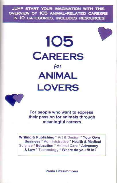 If you think that jobs involving animals are limited, you will be pleased to learn of at least 105 different paths you can take. 105 Careers for Animal Lovers is a 39 page booklet listing 105 career ideas including resources and tips to help the reader zero in and help jump start that career search. www.pjpublications.com